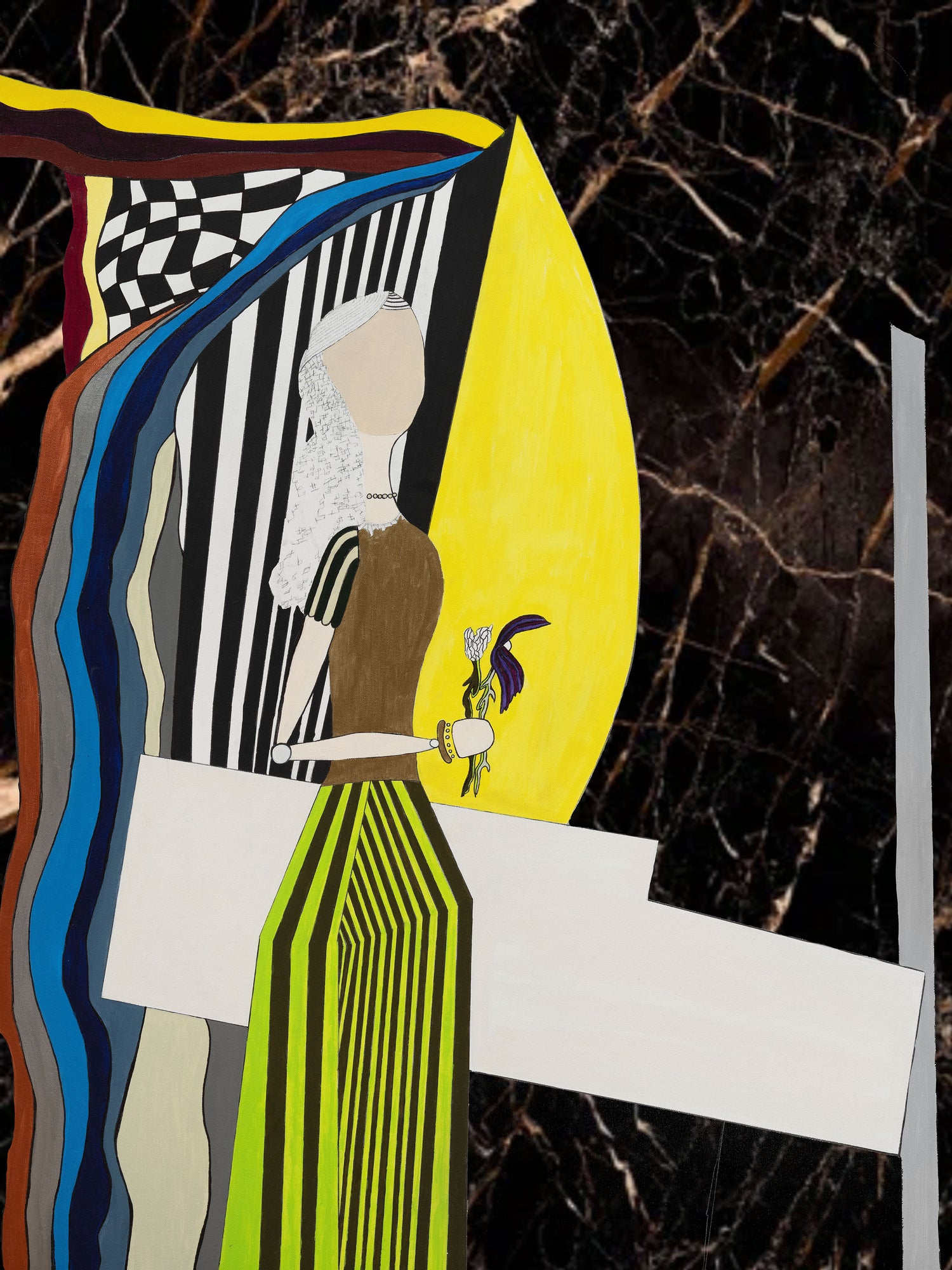 A meditation on time, identity, and multiple dimensions, The Seated Women Series reimagines the classical seated female figure through the lens of contemporary surrealism. These faceless figures are not bound to a single moment in time; instead, they express their essence through the world they construct around themselves—the objects they collect, the garments they wear, and the interiors they inhabit. Each painting unveils a layered existence, where the known and unknown merge: windows open to impossible landscapes, futuristic flowers bloom in mechanical elegance, and time is marked not by clocks, but by candlelight. This series challenges the traditional portrait—a woman is not defined by her face, but by the choices she makes, the beauty she surrounds herself with, and the way she exists in multiple dimensions at once.