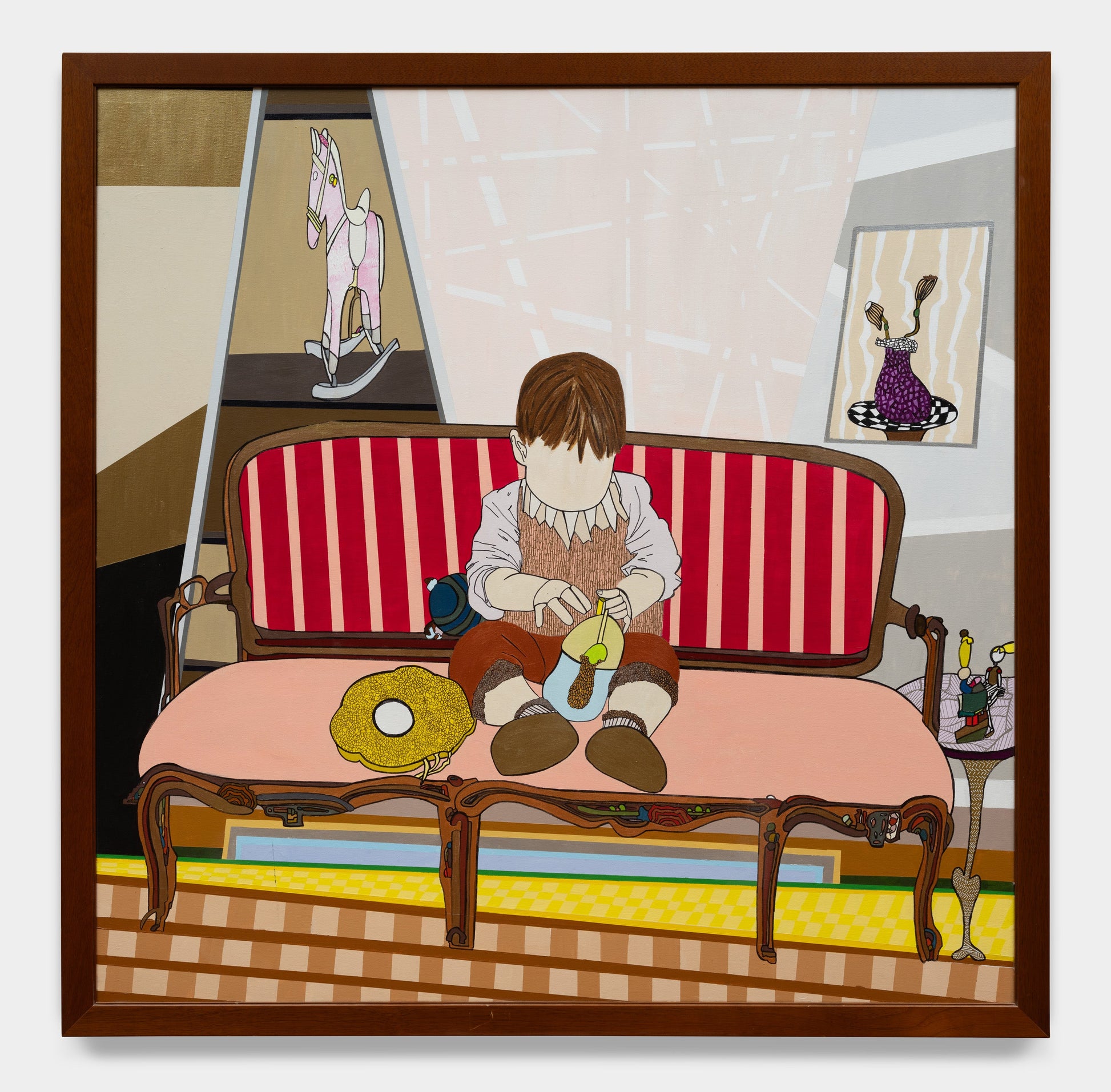 A tender reflection of early motherhood, My Rose is both a portrait of Kim Arrow’s daughter and a self-portrait of the artist as a new mother. She sits immersed in play, clutching a futuristic interpretation of her water bottle, beside her favorite crawling toy—both reimagined through Kim Arrow’s signature aesthetic. In the background, a rocking horse drifts in another dimension, a symbol of childhood nostalgia and the passage of time.